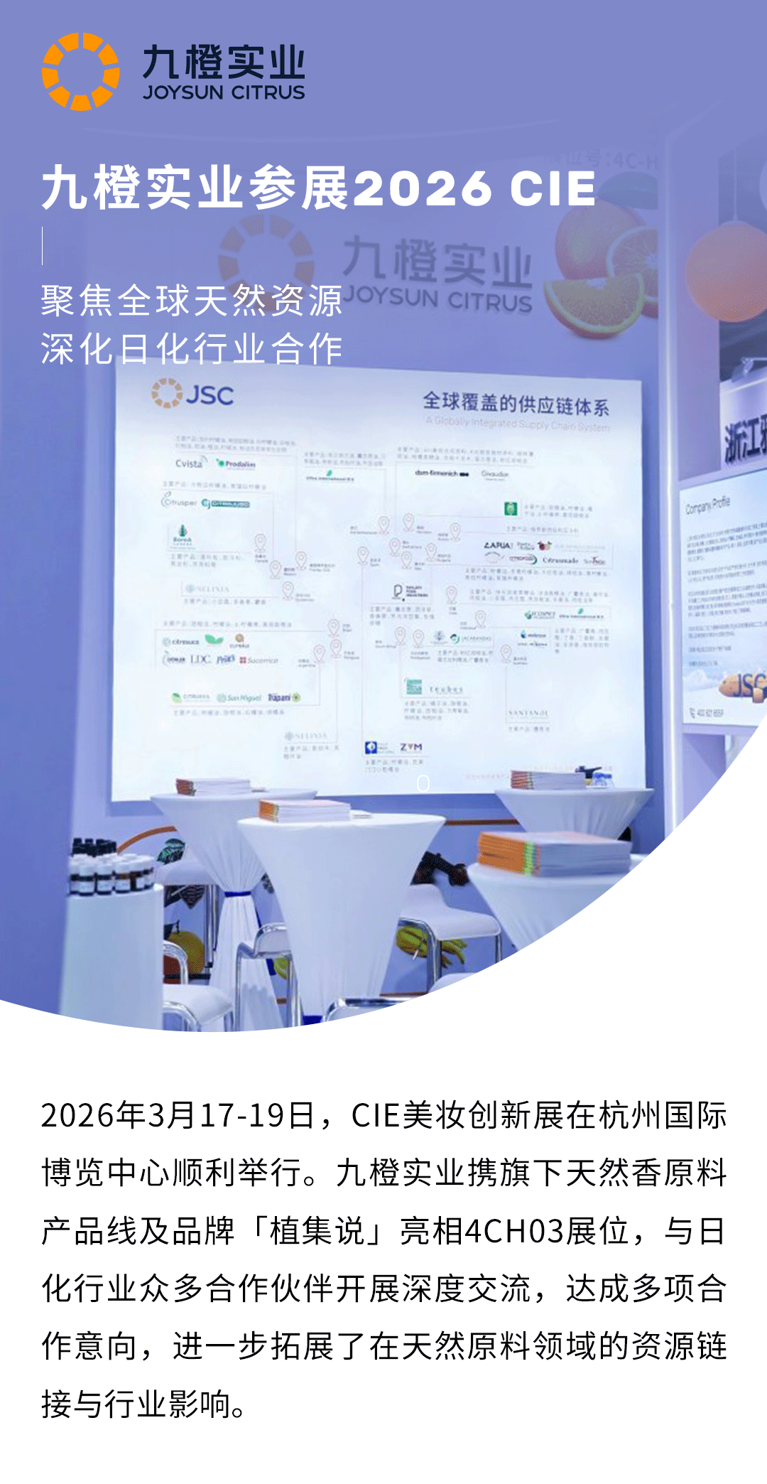 九橙实业参展2026 CIE:聚焦全球天然资源,深化日化行业合作