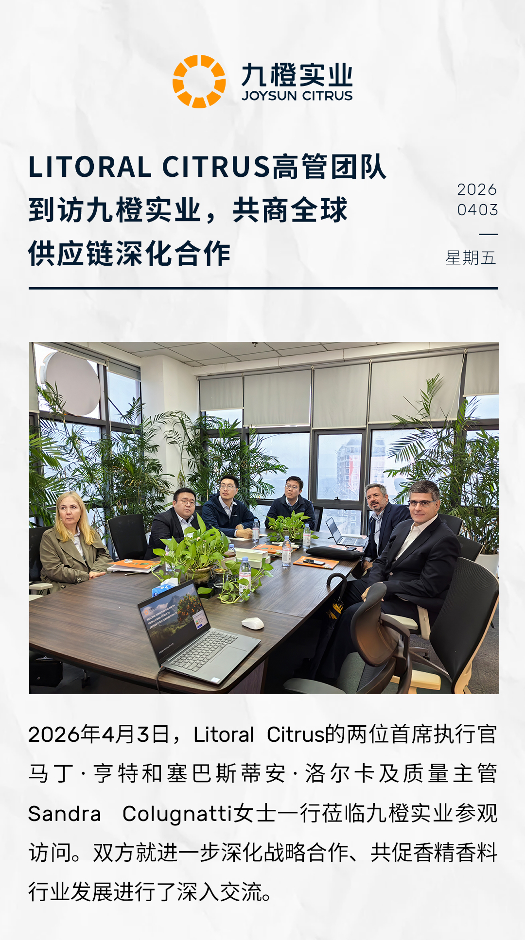 Litoral Citrus高管团队到访九橙实业,共商全球供应链深化合作